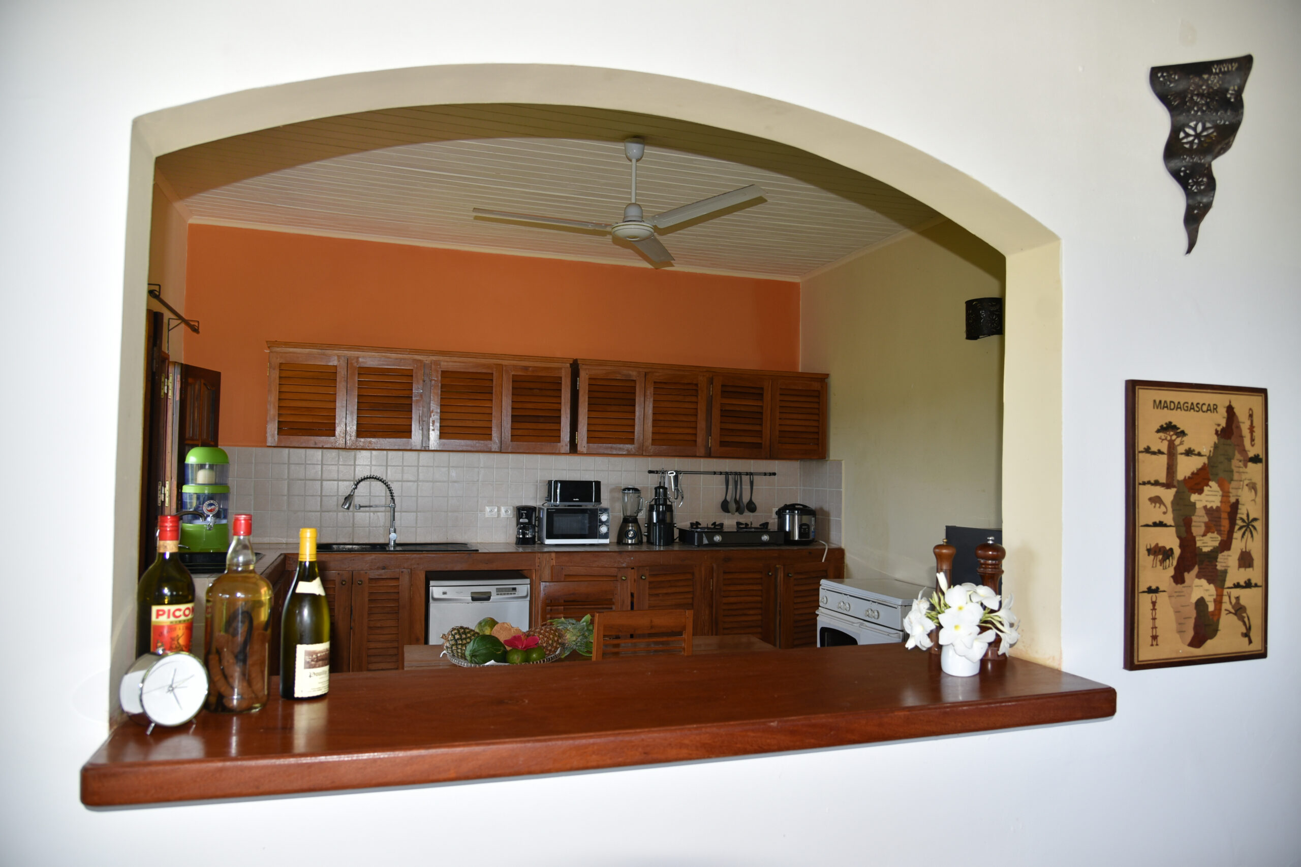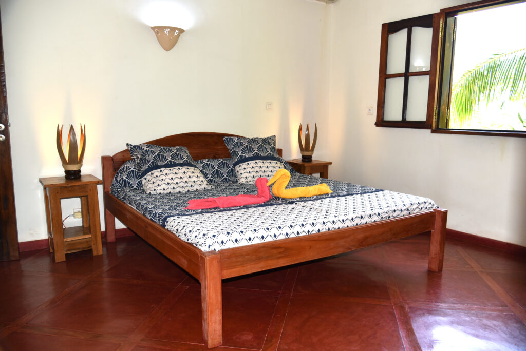 La Villa aux Bougainvilliers a été constuite au calme de 8000 m2 de verdure, vue à 180° sur l’Océan Indien, piscine à débordement face au sable blanc de l’île de Sakatia.